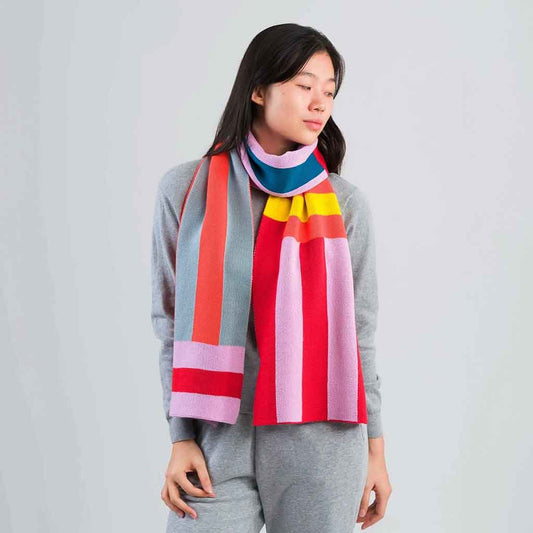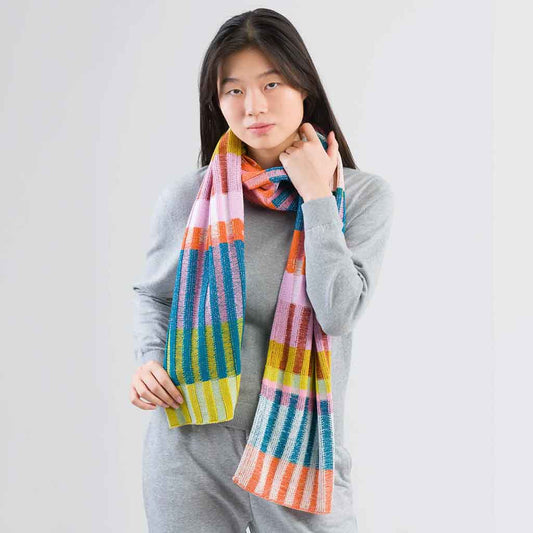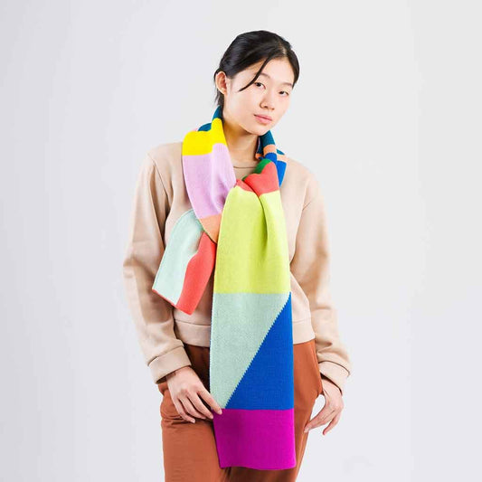 Pattern Patch Skinny Knit Scarf - Rainbow