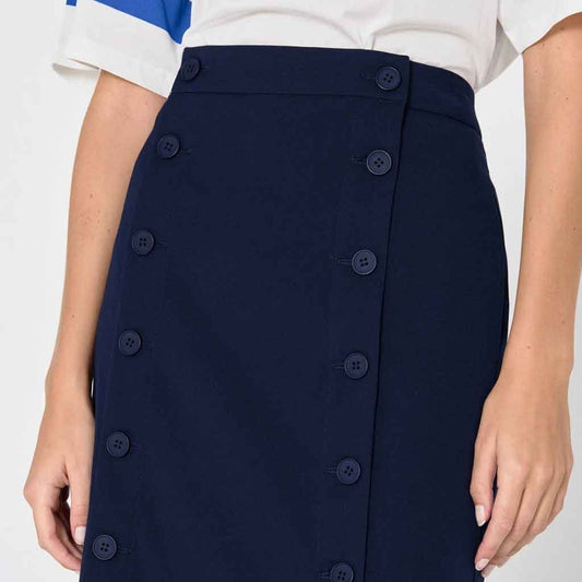 Double Buttoned Midi Skirt - Navy