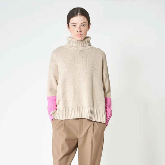 Hau Turtleneck Sweater - Beige/Pink