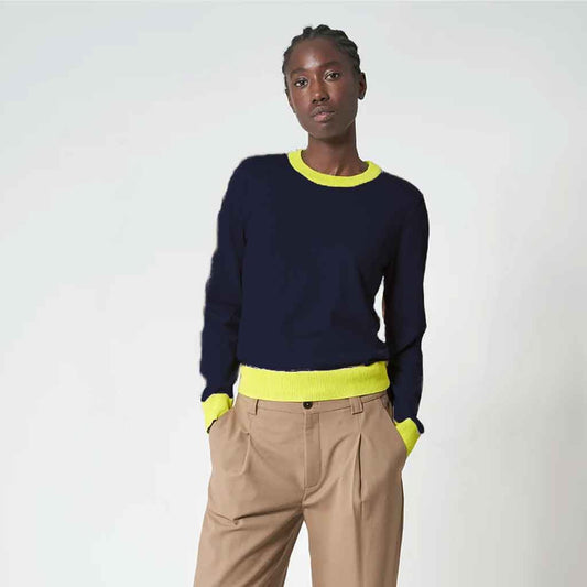 Saliu Crewneck Sweater - Navy/Lime