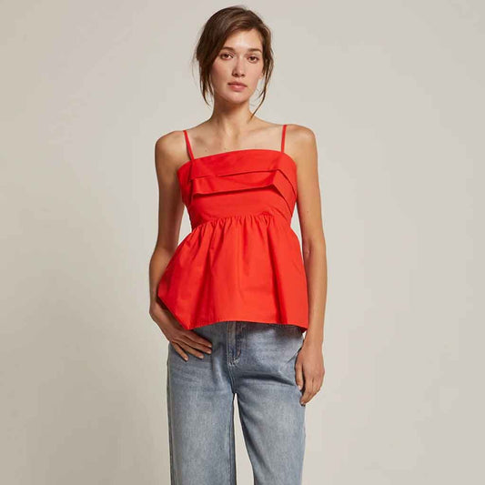 Mindy Pleated Camisole Top - Poppy