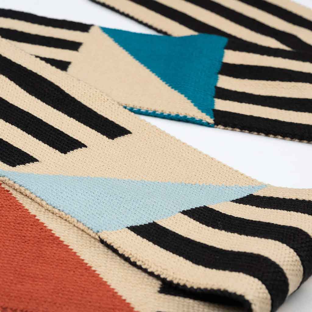 Bring color into your winter wardrobe with this stylish accessory. Blocks of stripe colors brightens this light, warm scarf made from new and repurposed deadstock yarn. We love the softness of the knit that Verloop had come to be known for and the extra length means it will be extra warm.